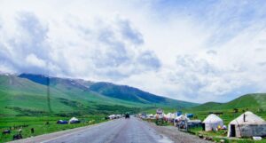 The drive, which takes about nine hours on average, was nothing short of stunning. We passed through winding mountain roads, dotted with picturesque villages and lush green landscapes. Along the way, we stopped at a yurt camp for a much-needed lunch break. The sight of traditional yurts against the dramatic mountain backdrop was a delightful introduction to Kyrgyz culture. The food, simple yet hearty, was the perfect fuel to continue our journey.