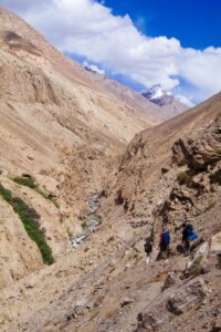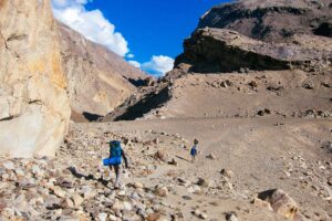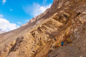 Just into the first hour of our trek, we hit an unexpected challenge—rockfalls. Our path was abruptly blocked, and for a moment, we weren’t sure if we’d be able to continue. We waited cautiously for the falling rocks to subside, hearts pounding as we stood at the side of the mountain. Once it was safe, we carefully repathed the track, shifting stones and testing the ground beneath our feet. It was a slow and tense process, but eventually, we managed to carve out a new way forward, determined to keep going.