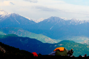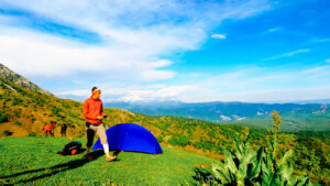 Our first day ended at a breathtaking campsite perched on a ridge with sweeping views of the surrounding valleys. Just as we began setting up our tents, a group of horses wandered over, as if to welcome us. They stood quietly nearby, their silhouettes against the golden light of the setting sun making for a magical moment.
